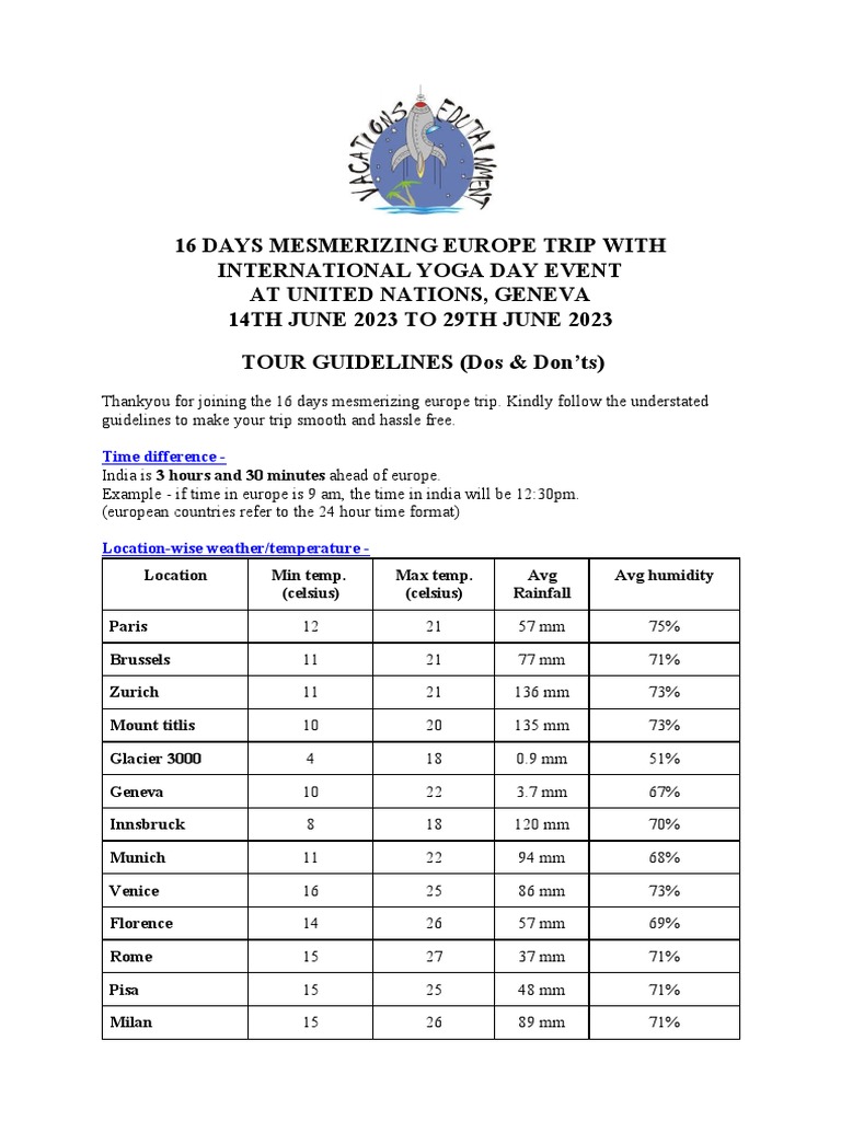 Guidelines (Dos and Don'Ts) For Europe Trip PDF Meal Baggage